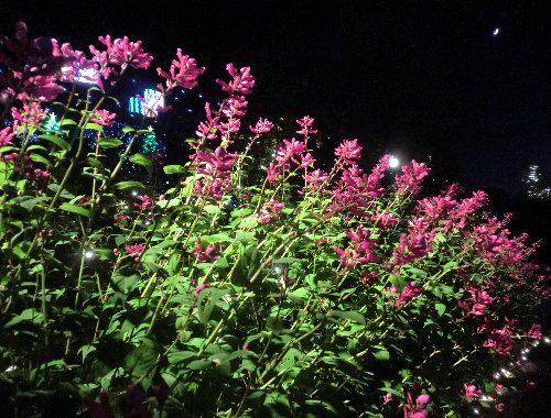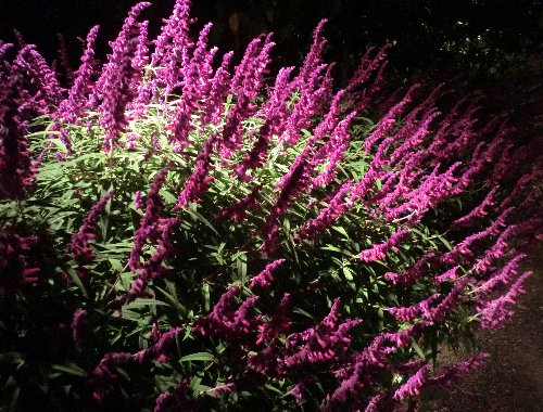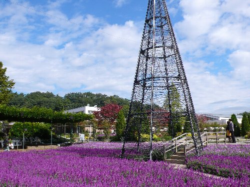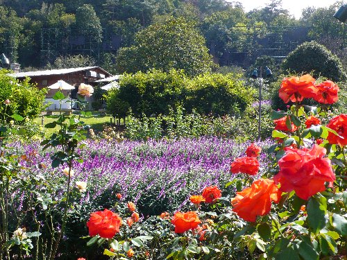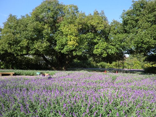 こちらは毎年恒例。アカメステージのアメジストセージです。アカメヤナギの大木とアメジストセージの組み合わせは、あしかがフラワーパークならではの景色です。