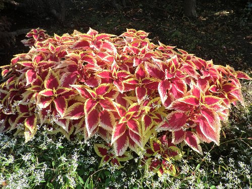 コリウスも初夏から秋に大活躍してくれました。半日陰の所の方が綺麗に色づくようですね。香りの庭で写真を一枚。