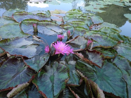 こちらは熱帯性スイレン。秋は濃い目な色がお勧めです。