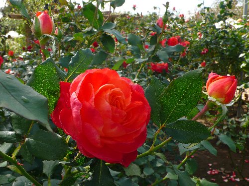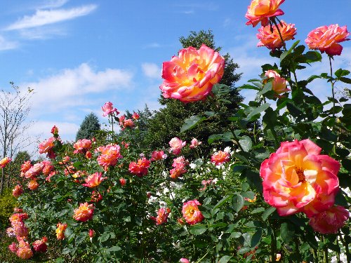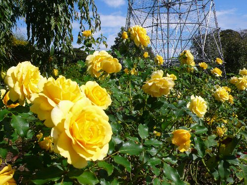 バラ「栄光」が花盛りです。秋の澄んだ空によく映えています♪