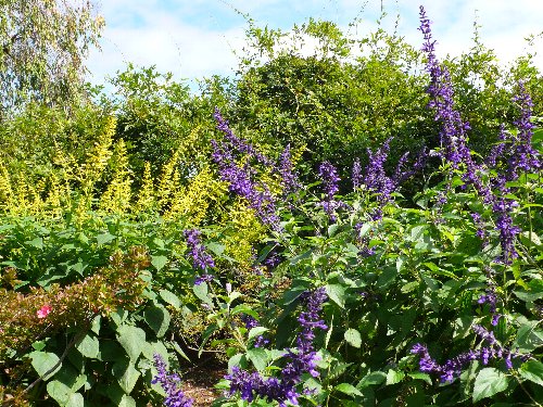 アメジストセージやローズリーフセージの他にも珍しい種類のセージが多数植えられています。園内奥の池周りに植えられているのでスイレンを楽しみつつご覧下さい!