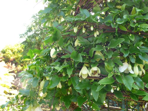 香りの庭のクレマチス「ジングルベル」が咲き始めました♪もう2ヶ月もするとクリスマスなんですね…早いなぁ(^^;
