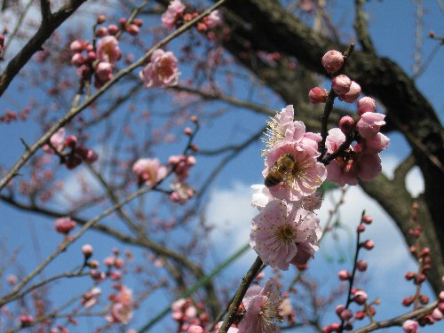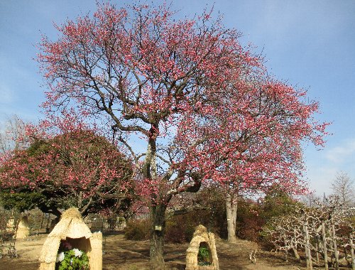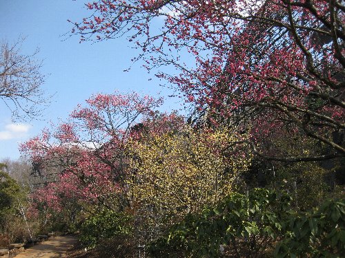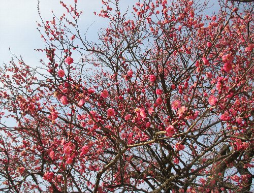 山手にも寒紅梅が色づいています。