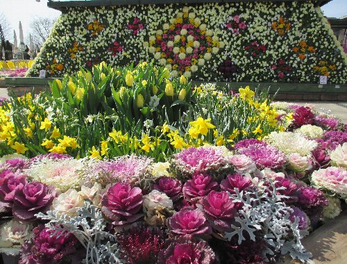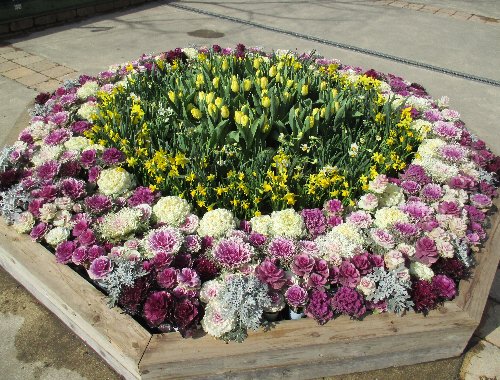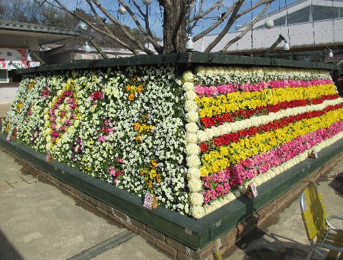 さてこちらは園内入ってすぐ、メタセコイヤ下のはめ込み花壇前…