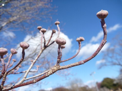 朝晩の冷え込みと、赤城山から吹き下ろす乾燥した風に吹かれ、早く暖かくならないかと春が待ち遠しくなりますが、園内の植物たちも春が来るまでもうしばらくと、この寒さをじっとこらえています。