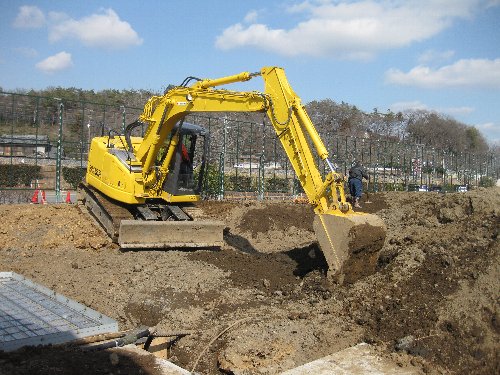 そして最後になりますが、こちらは新バラ園造成中の現場!毎日たくさんの土を載せたトラックが行き交いしています。元々植えられていた木の根や笹の根、石なども取り除いていい土になるよう手間暇色々かけてます(>▽<)