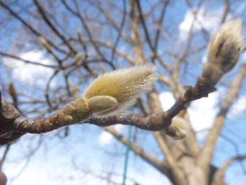 毛皮つながりでこちらはハクモクレン(白木蓮)。大藤の西側ツツジの丘に大きなハクモクレンが植栽されています。