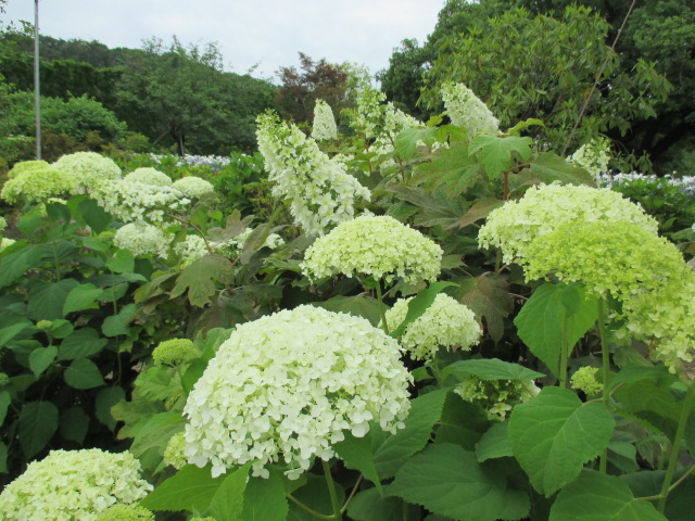 ブルー&ホワイトガーデン開幕中ということで花菖蒲とあじさいが綺麗に咲いております(^^)