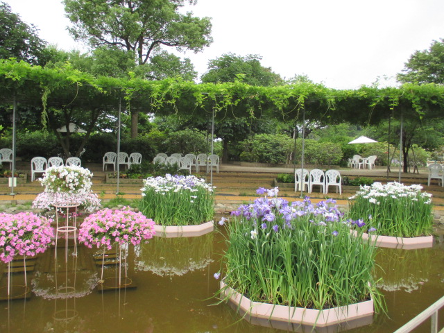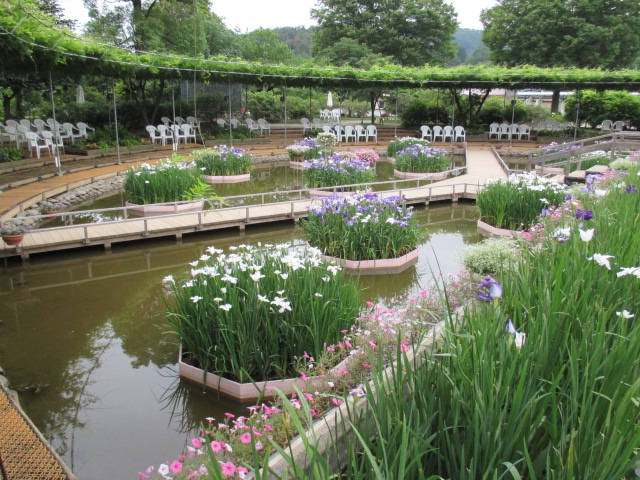 アカメステージに花菖蒲や半月池に花菖蒲が登場しました。