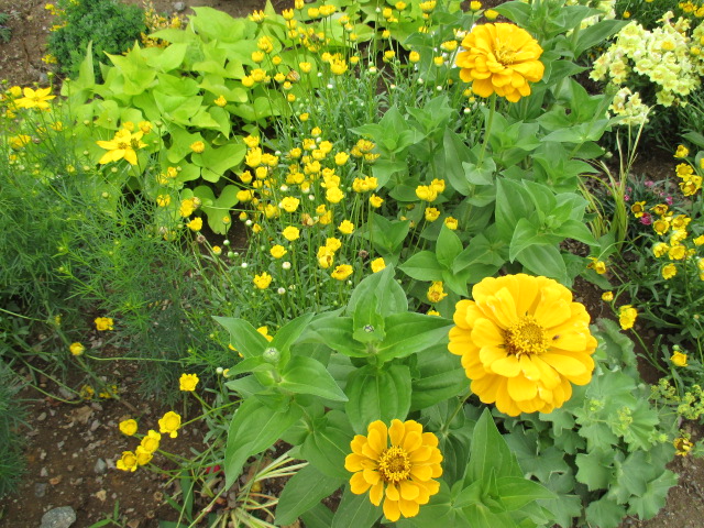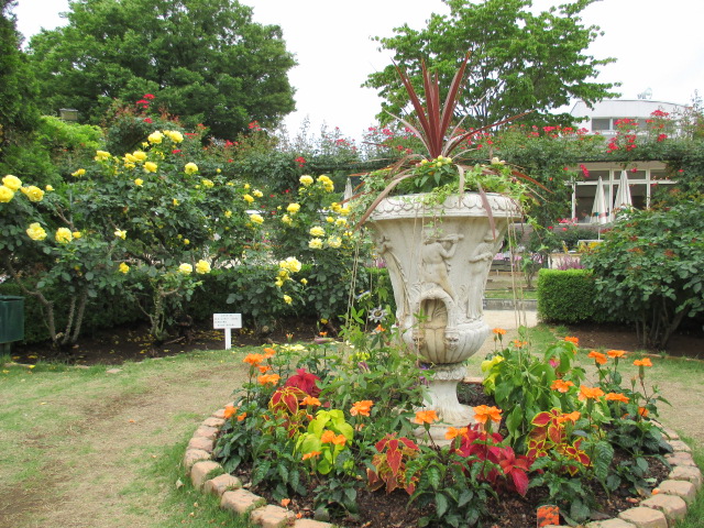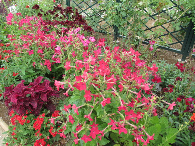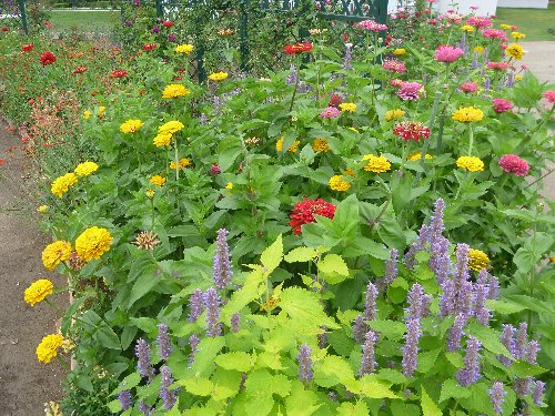 新バラ園ではジニアやニコチアナなど色とりどりの花が咲いています。