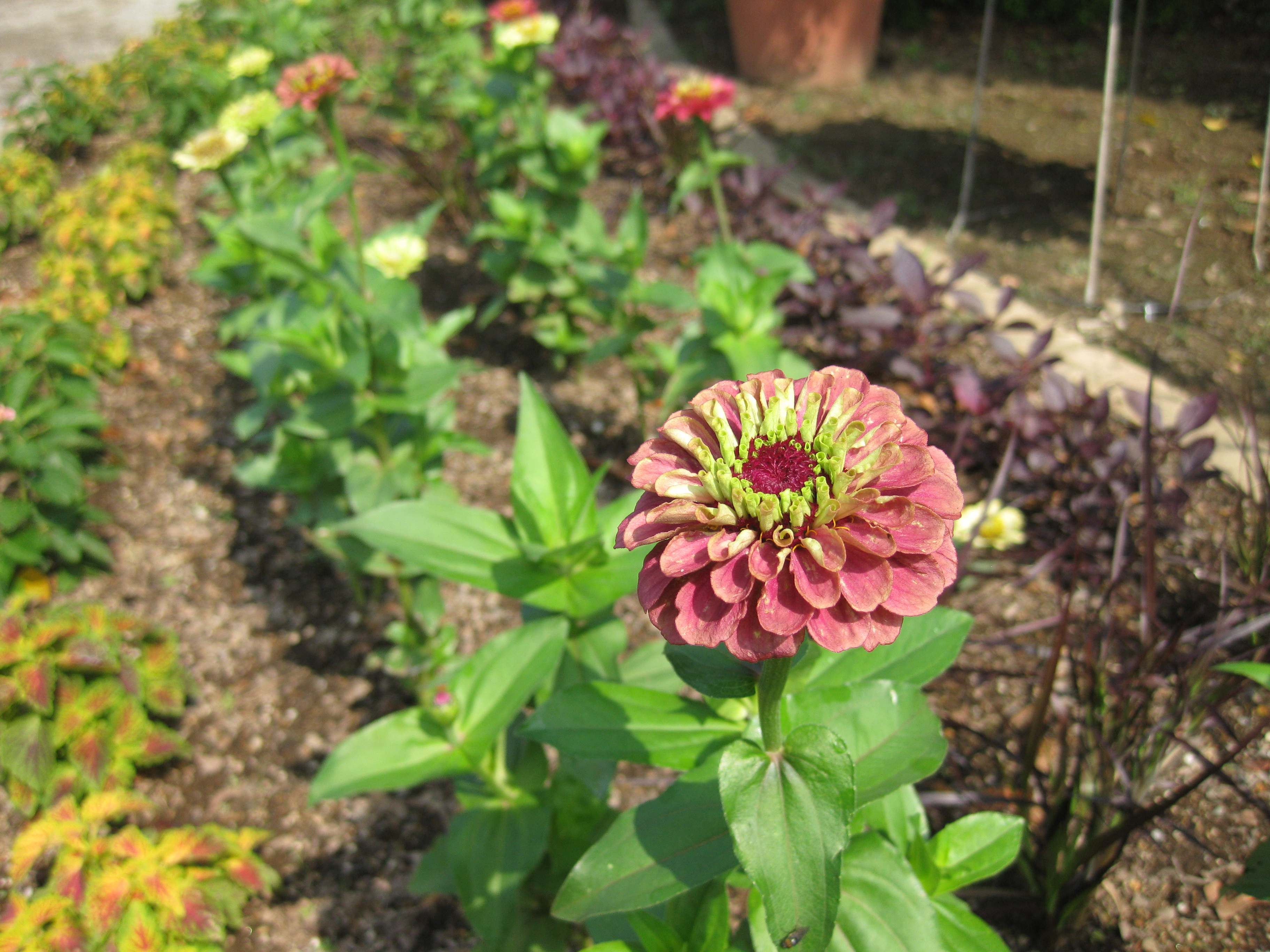 ジニア・クイーンレッドライム 赤からライムグリーンへとグラデーションが素敵なシックな花