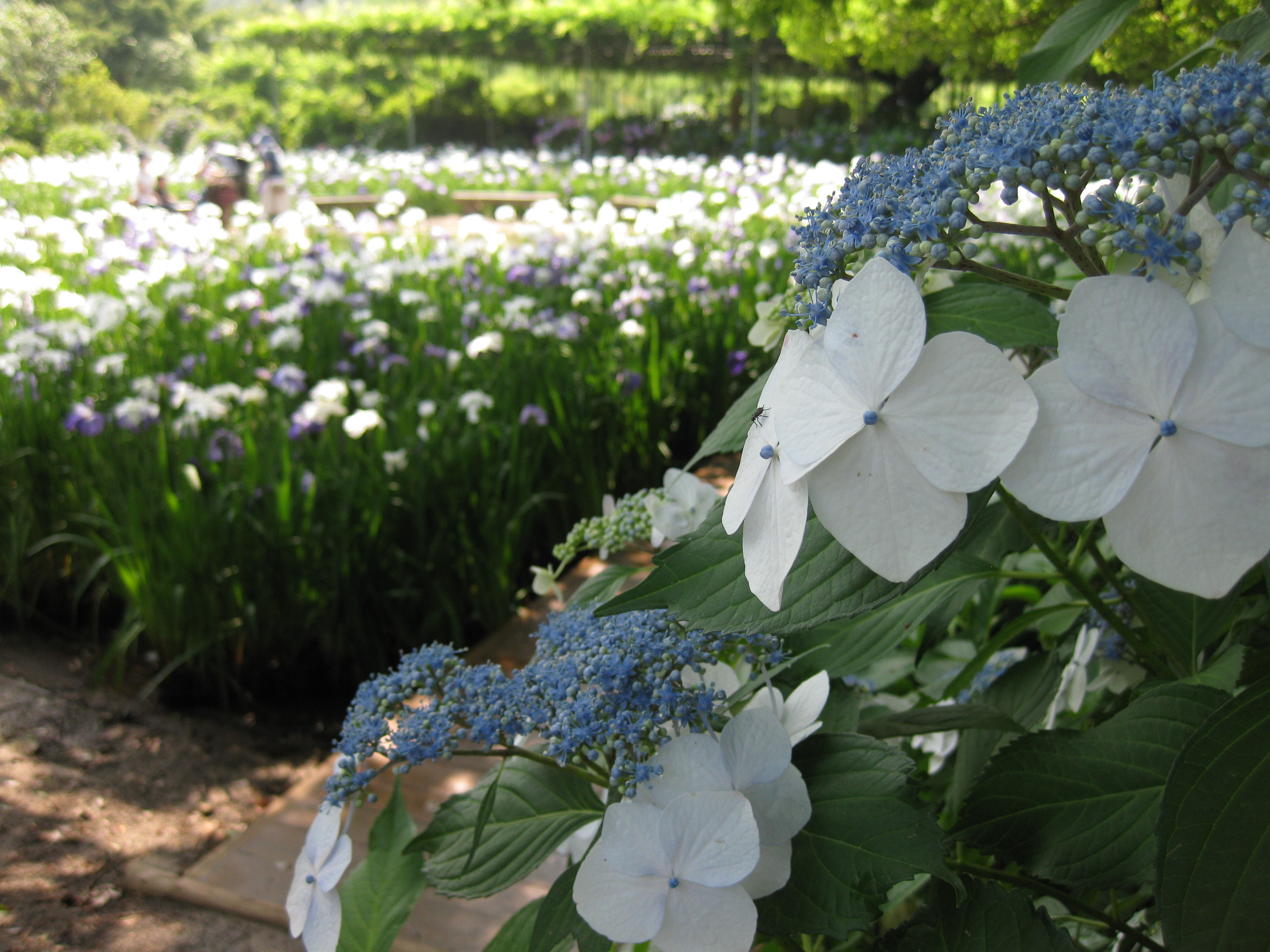 今年も花菖蒲とアジサイの競演、「ブルー&ホワイトガーデン」の季節がやってまいりました。