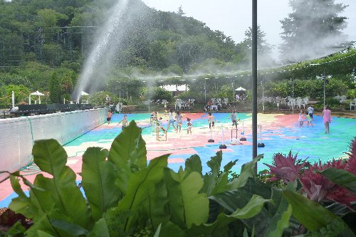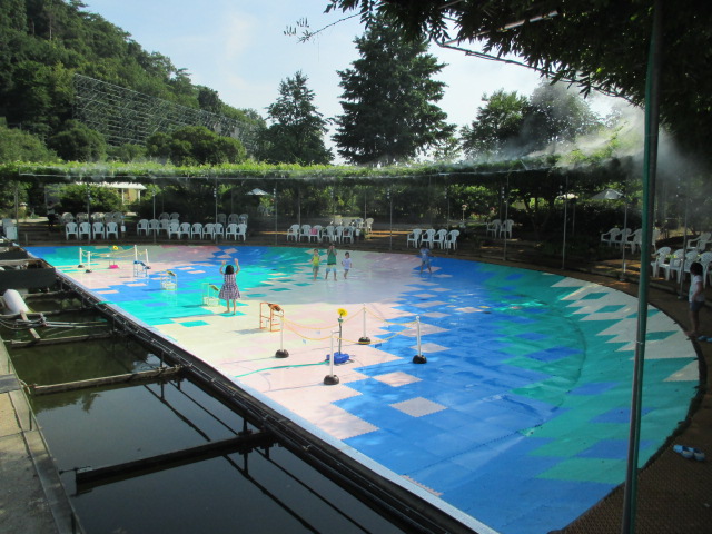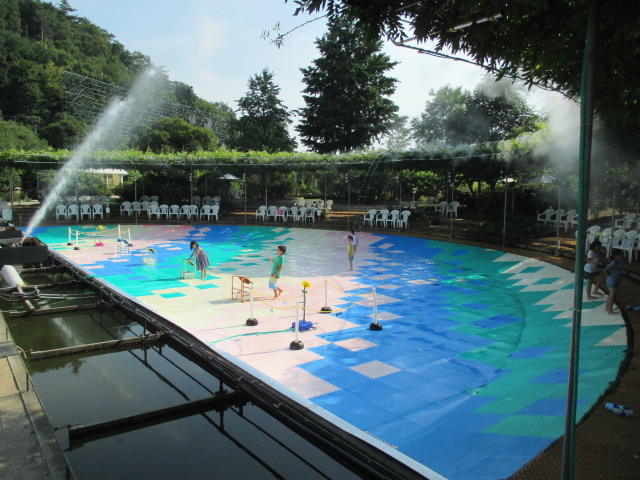 ずぶぬれになって水遊びを楽しむお子様たちを木陰で見守るご家族の方も楽しそうです。