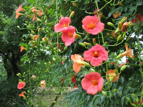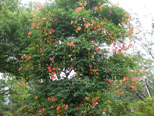 ノウゼンカズラが滝のように花を咲かせる姿は圧巻そのもの。