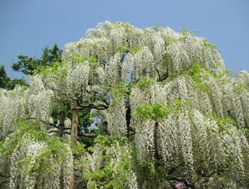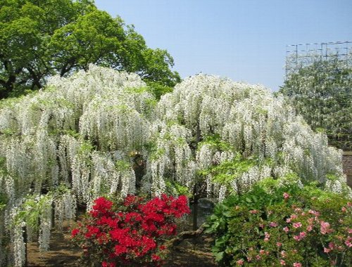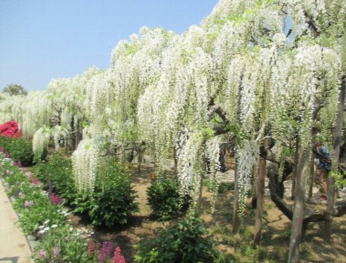 鮮やかな色ととても相性のいい白藤ですが、白藤トンネルは一面が白の世界です。