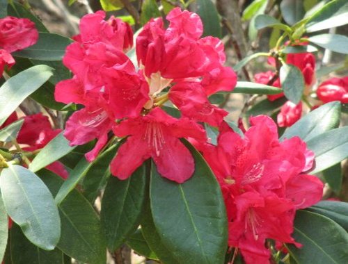真っ赤という表現がぴったりすぎる、西洋シャクナゲ ジーンマリー