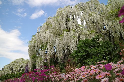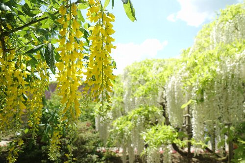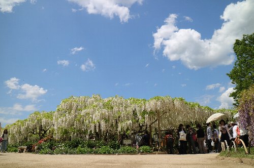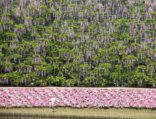 総長80mの白藤のトンネルも見ごろを迎えつつあります。