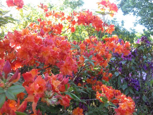 同じシャクナゲの森にてエクスバリ―アザレアも見頃です。レンゲツツジの仲間で暑さにはあまり強くはなく関東以西では育てるのが難しめです。園内でも半日陰ぐらいの所のが元気に咲いています。
