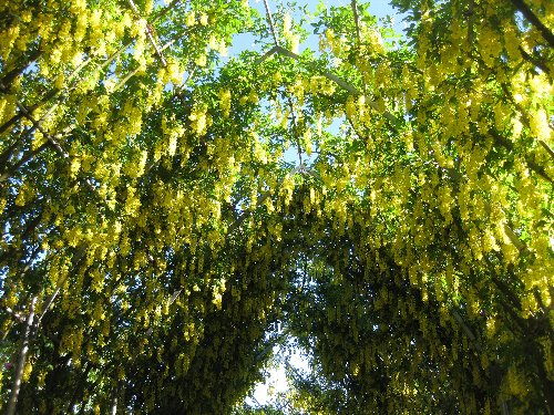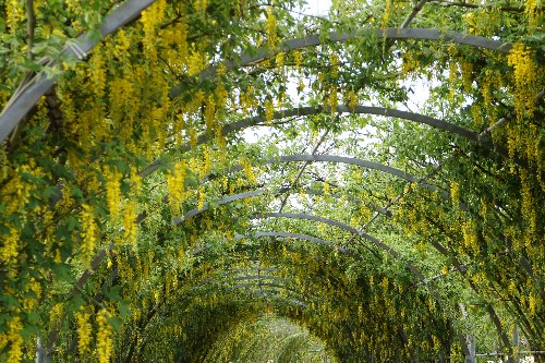 キバナフジのアーチでも黄金色のシャワーが降り注いでいます!!