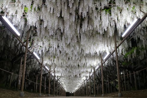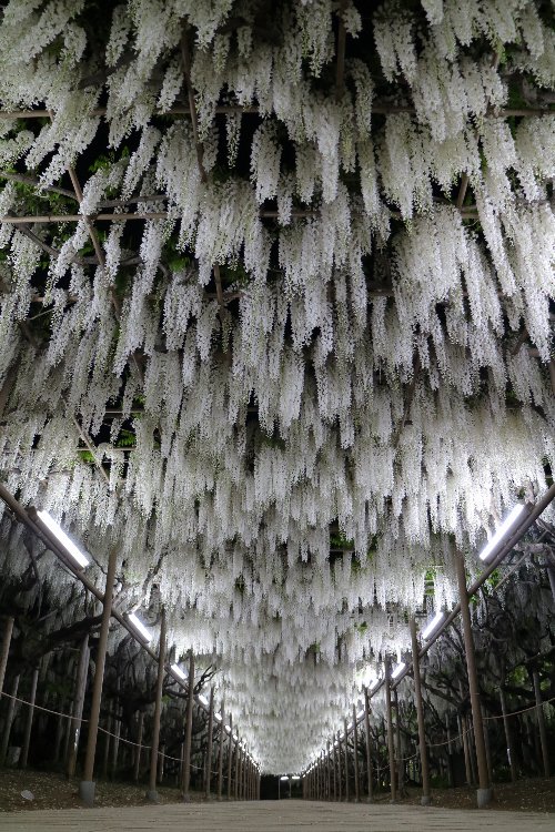 今回は、一番美しい時を迎えた白藤トンネルの様子をお届けします。
