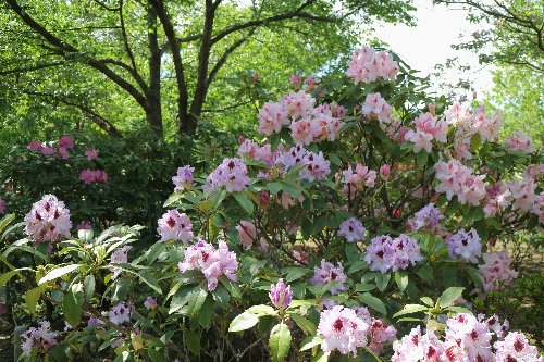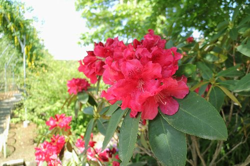 園内の中咲き、遅咲きの西洋シャクナゲも見頃です。