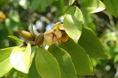 カラタネオガタマもたくさん花をつけて、近づく人に香りで存在をアピールしています。