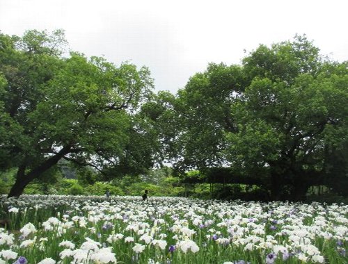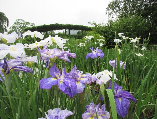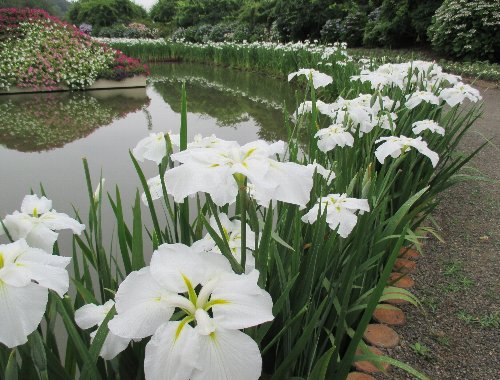 花菖蒲はフラワーステージから園内西へ向かって桟橋の池まで、