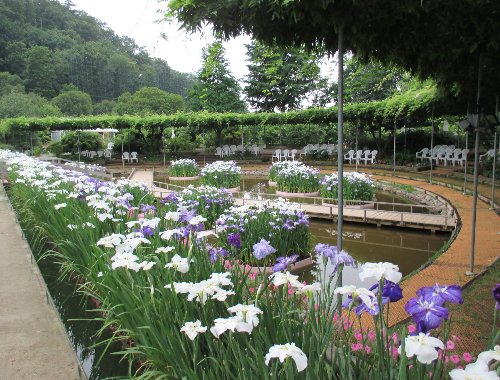 あしかがフラワーパークの花菖蒲はポット管理栽培の為、移動が可能です。