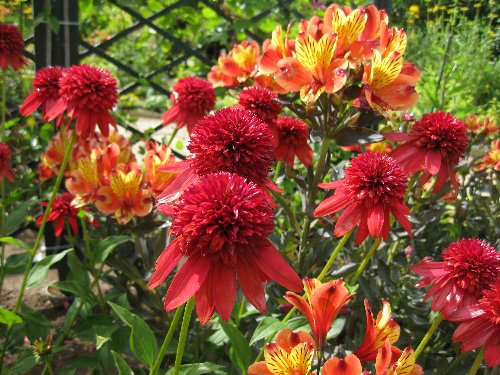 夏らしく鮮やかなエキナセア エキセントリック(赤)とアルメリア インディアンサマー(オレンジ)