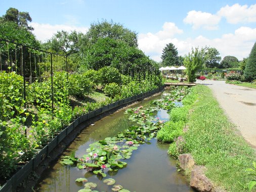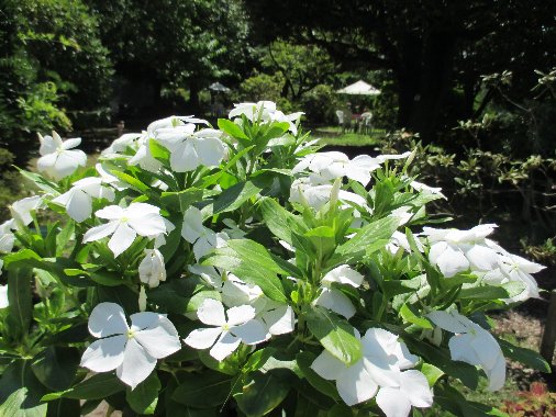 今年は山水路沿いやマロニエ休憩所にマンデビラが登場しました。