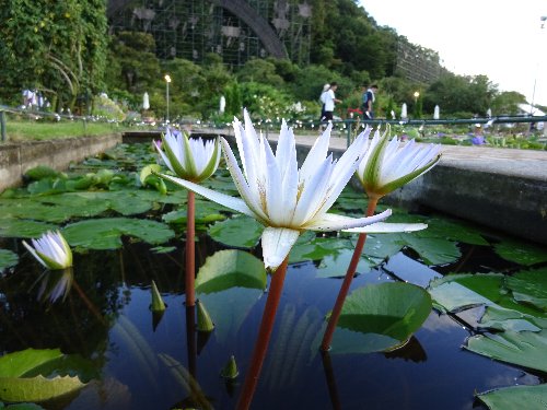 フラワーステージではスイレンも綺麗に咲いてます♪夜のスイレンはイルミネーションでキラキラと照らされて幻想的です☆