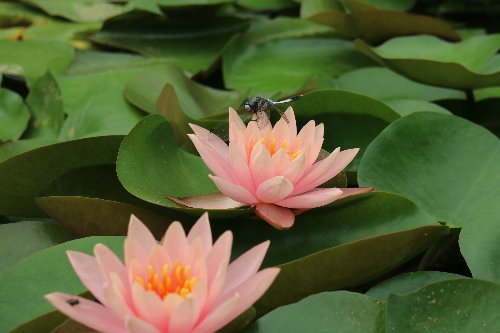 まずは、スイレンとシオカラトンボ。お花の上で一休み中。