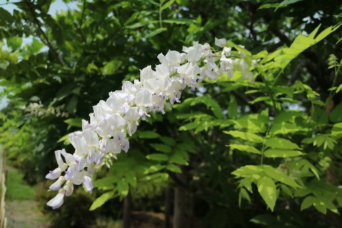 藤のはな物語後半に咲く白藤。園内を真っ白に染めます。