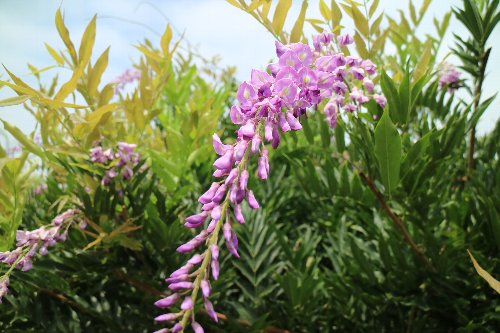 続いて紫藤。薄紅藤の後に咲く藤の花です。花の色や長さなど一番バリエーションに富んだ藤です。
