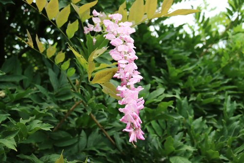 そして最後は本紅藤。濃いピンク色が特長です。花の咲く時期は紫藤と同じ頃です。
