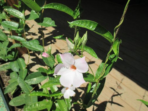 マンデビラは夏の花として定着しつつあるキョウチクトウ科の熱帯性植物です。