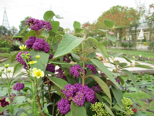 秋仕様にかえた寄せ植えの一角では紫式部などの秋色がお目見えしております。