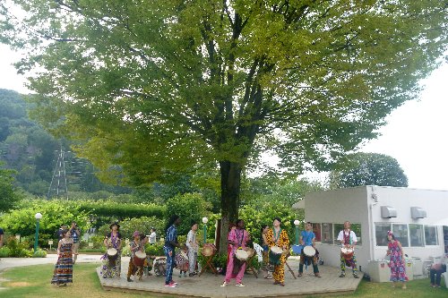 大きなケヤキの下で陽気な音を奏でます。小さい奏者さんも一生懸命太鼓を叩いてましたよ(#^.^#)