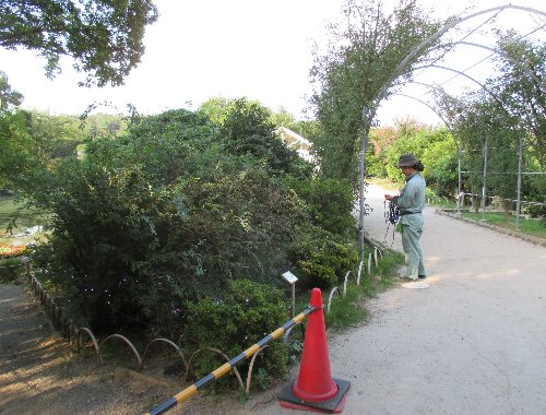 茂みに隠れて作業するスタッフの姿を見つけてください。