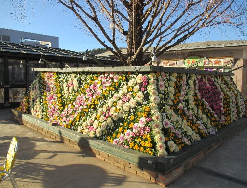 まずは昼の部から…ショッピングハウス入口、今年も大きなモミの木が飾られています!夜になるともちろん綺麗に光り輝くのですが手前の花壇もクリスマスカラーで可愛くありませんか?(^^)