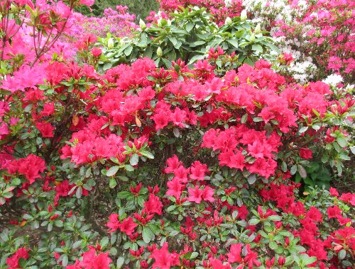 園内では只今、早咲きのツツジやシャクナゲが見頃となっております。