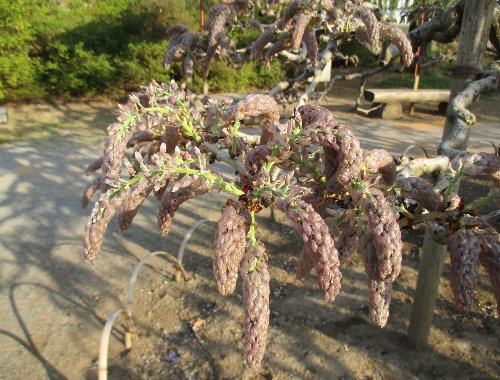 藤のつぼみの塊は、見方によってはいもむしのようですが、