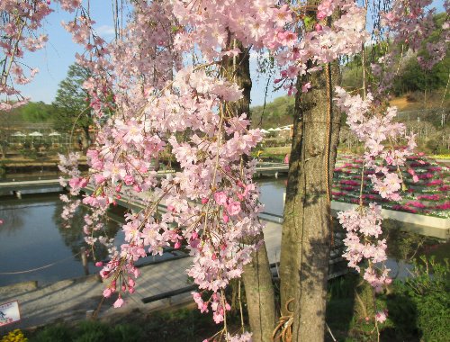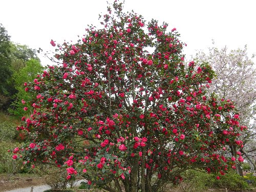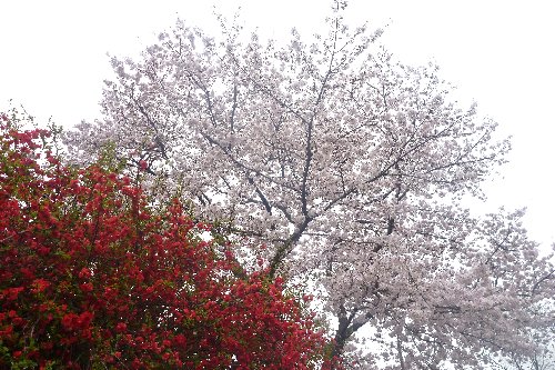 他にもレンギョウやユキヤナギも周りに植栽されており、現在は、赤、白、黄色、ピンクの四色が同時に楽しめます。