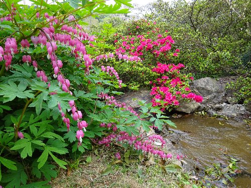 山の小川沿いにて。山側の各所にてタイツリソウも見頃を迎えております。数は少ないですが、白花や赤花のタイツリソウも植えられています。山側を歩かれる際には、足元にも視線を向けてみて下さいね♪