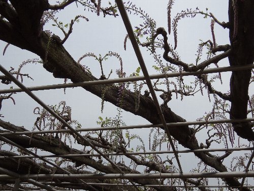 藤は少し遅れ気味ですが…うすべに藤の蕾がほぐれてきました。