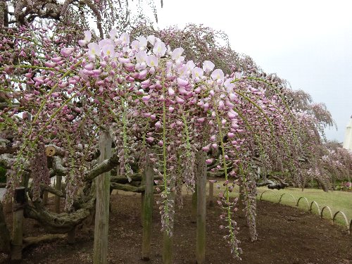 現在園内はさくら色の藤(うすべに藤)が満開となりました。