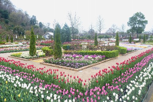 春らしい柔らかな色合いで園内を華やかに彩っています。
