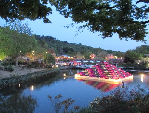 藤以外で園内を彩るお花で、今一番のおすすめなのは八重桜です!!特にこの濃いピンク色のものが大変綺麗な状態です(*^^*)23日からライトアップも始まり、こちらの八重桜も美しく照らし出します。幻想的な八重桜のライトアップをどうぞお楽しみに♪