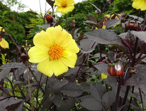 ローズガーデンへやってくると、ダリアが存在感抜群で咲いていました!