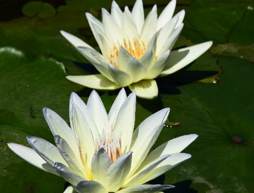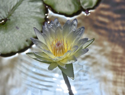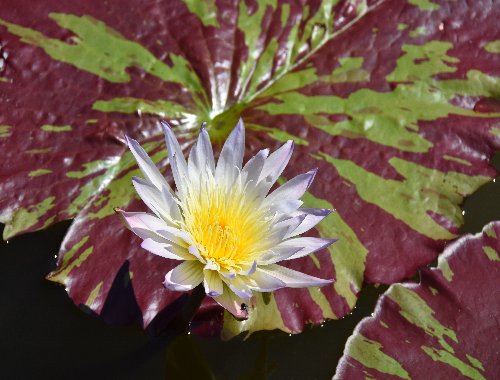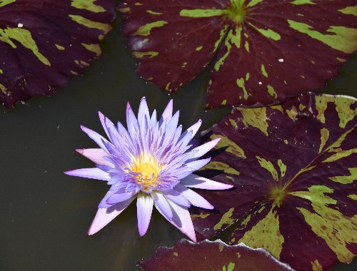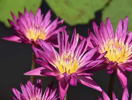 青、黄、ピンク、白など色や形がさまざまなスイレンたちが